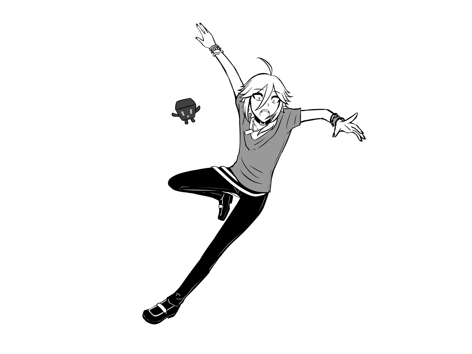 Sketched character(s). Does not have dedicated line art, but it is made with a cleaned sketch.
